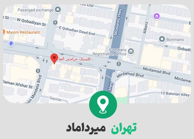 تهران بلوار میردادماد زیر پل میرداماد – ضلع جنوب شرقی – پلاک 400 کلینیک جراحی آلفا